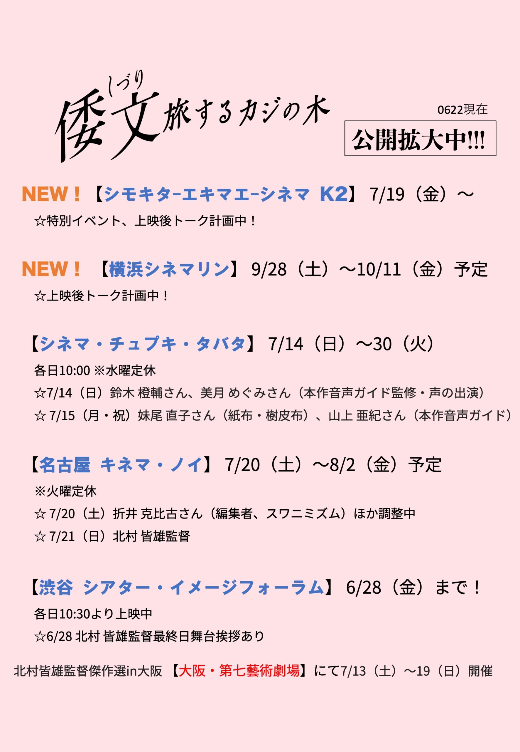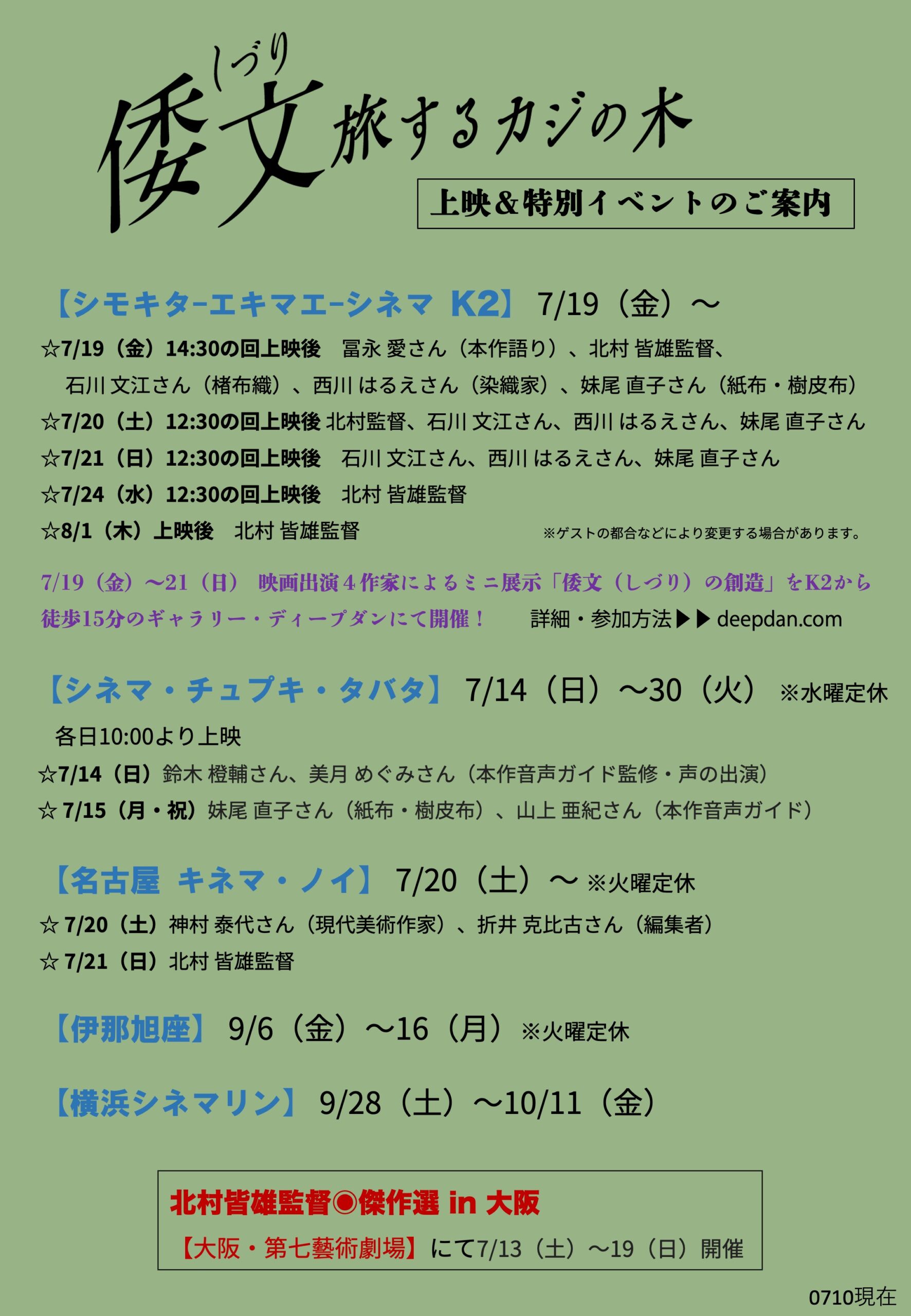 「倭文 旅するカジの木」京都、大阪のトーク、上映時間が決まりました!
