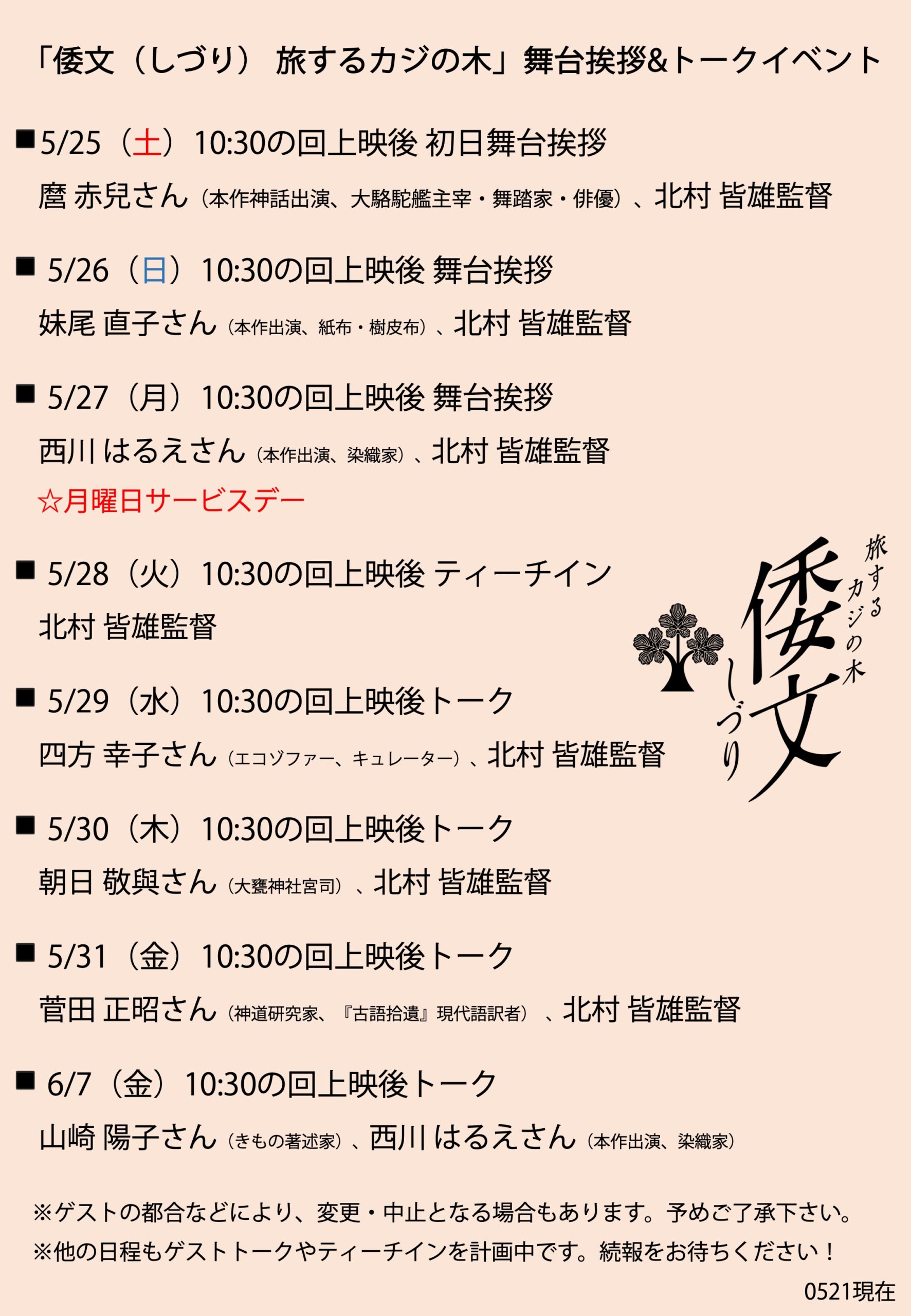 トークイベント・舞台挨拶スケジュールです。
