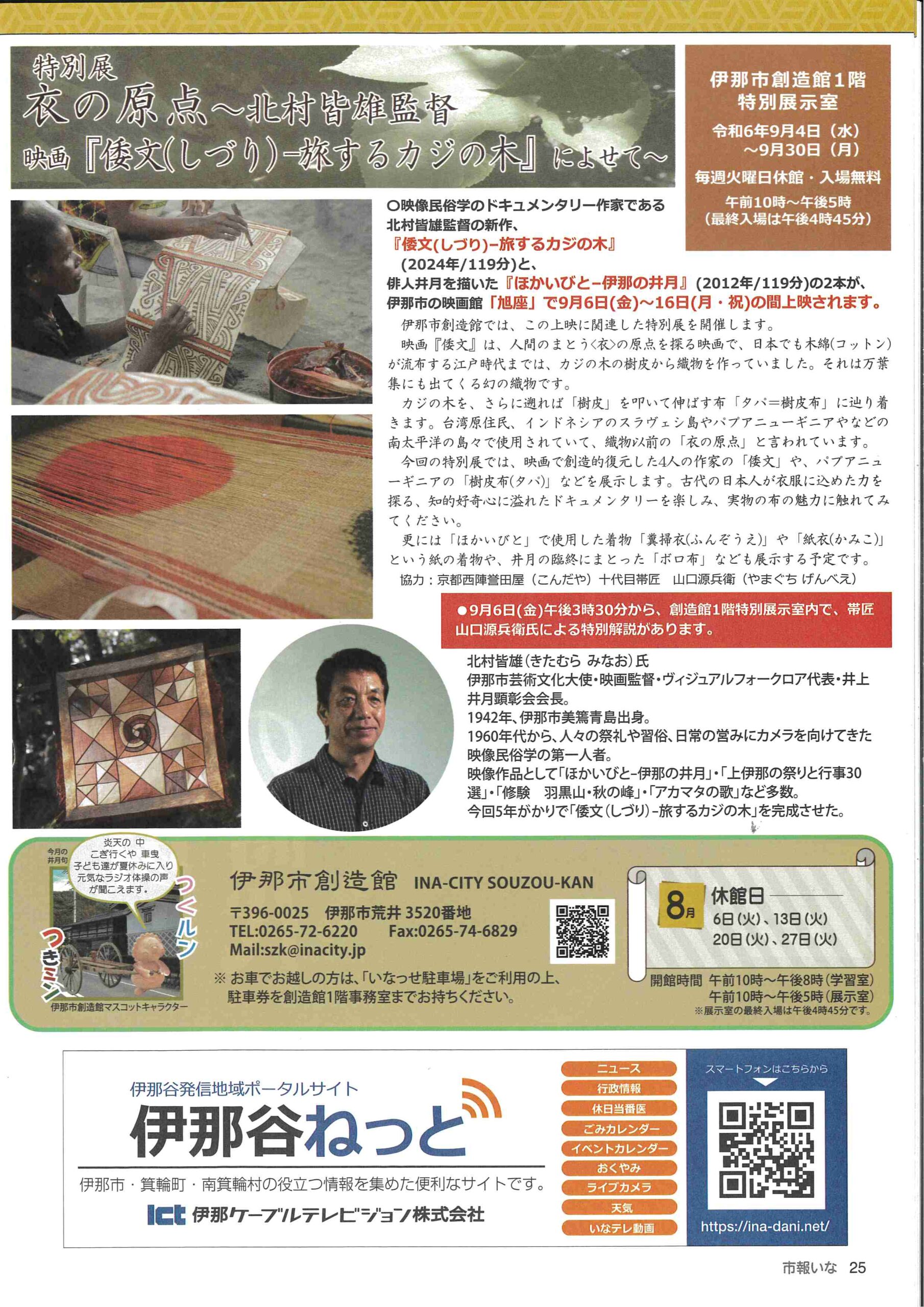 5/25(土)~公開の映画「倭文(しづり) 旅するカジの木」上映時間のお知らせ