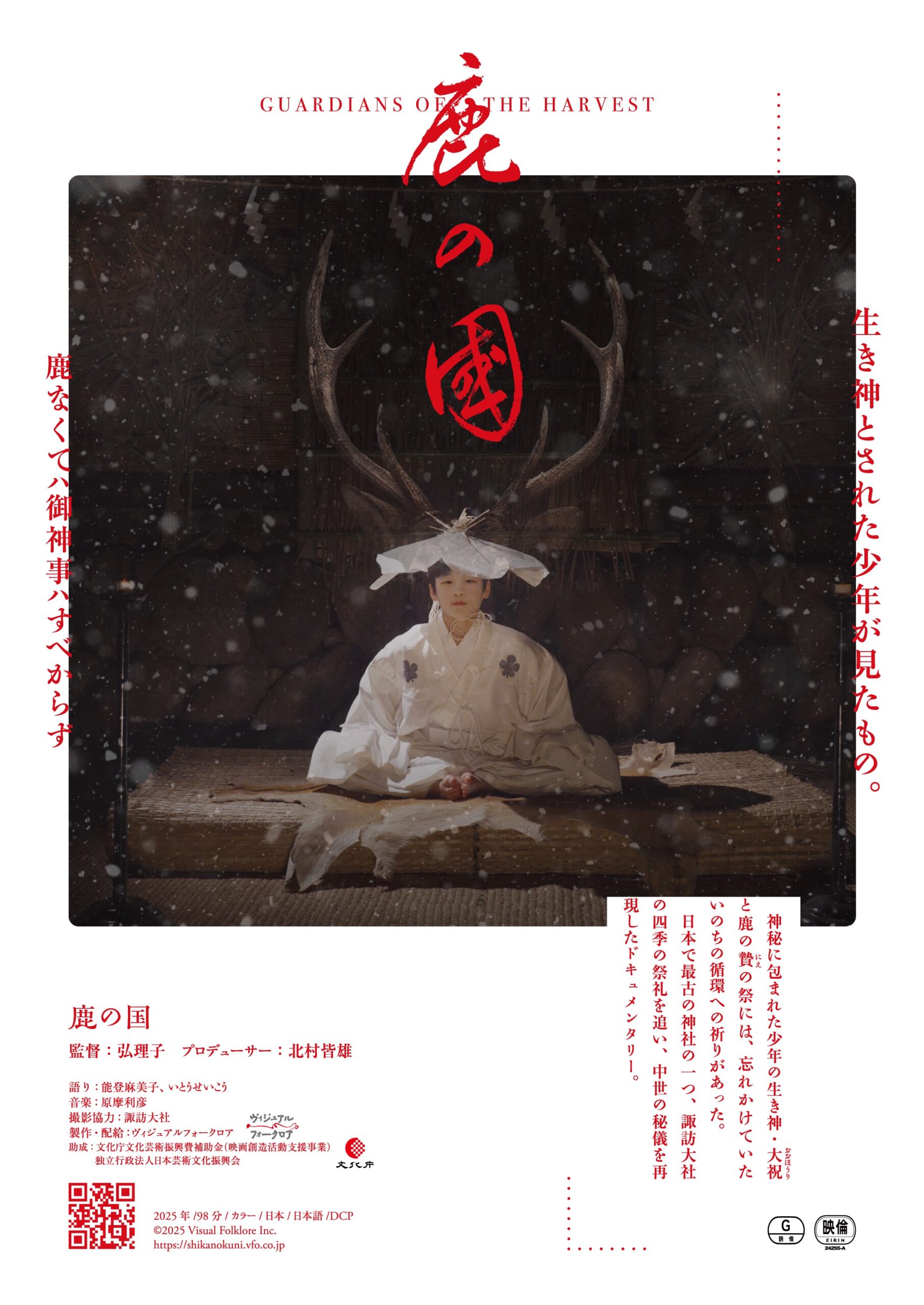 諏訪の1年を追った最新作映画「鹿の国」が2025年正月に公開されます。
